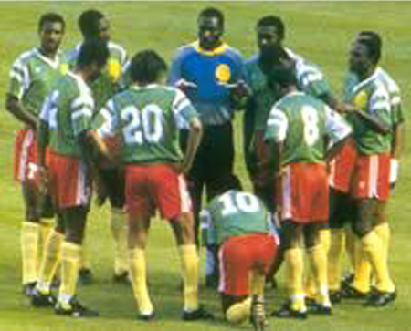Camerún: N’Kono, Ebwelle, Massing, Kunde, Tataw; Pagal, Libiih, Mfede (Ekeke, 62), Maboang (Milla, 46), Makanaky y Omam Biyik.