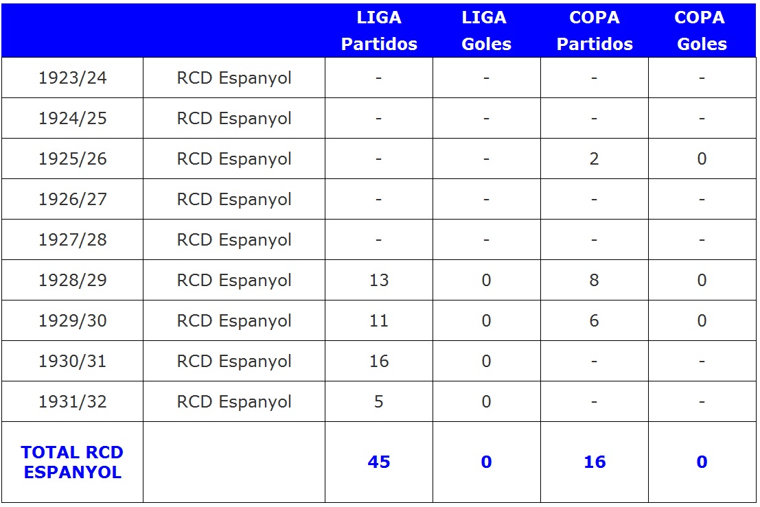 RCD ESPANYOL: Aznar; Saprissa, Moline, Trabal, Solé, Pausas, Prat, Besolí, Edelmiro, Tena II, Juve.