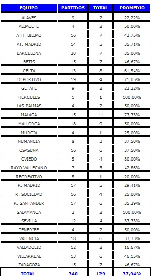ESTADISTICAS DE RAÚL TAMUDO EN LIGA CON EL RCD ESPANYOL